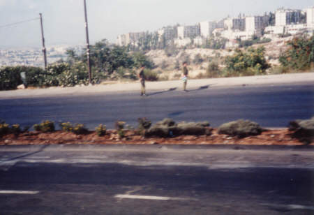 Here are two soldiers thumbing for a ride. This practice was ruled to be too dangerous in the wake of all the terrorist attacks.